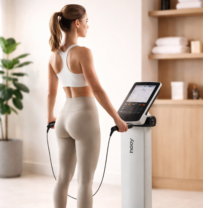 • Évalue la composition corporelle (masse grasse, musculaire, hydratation, minéralisation)